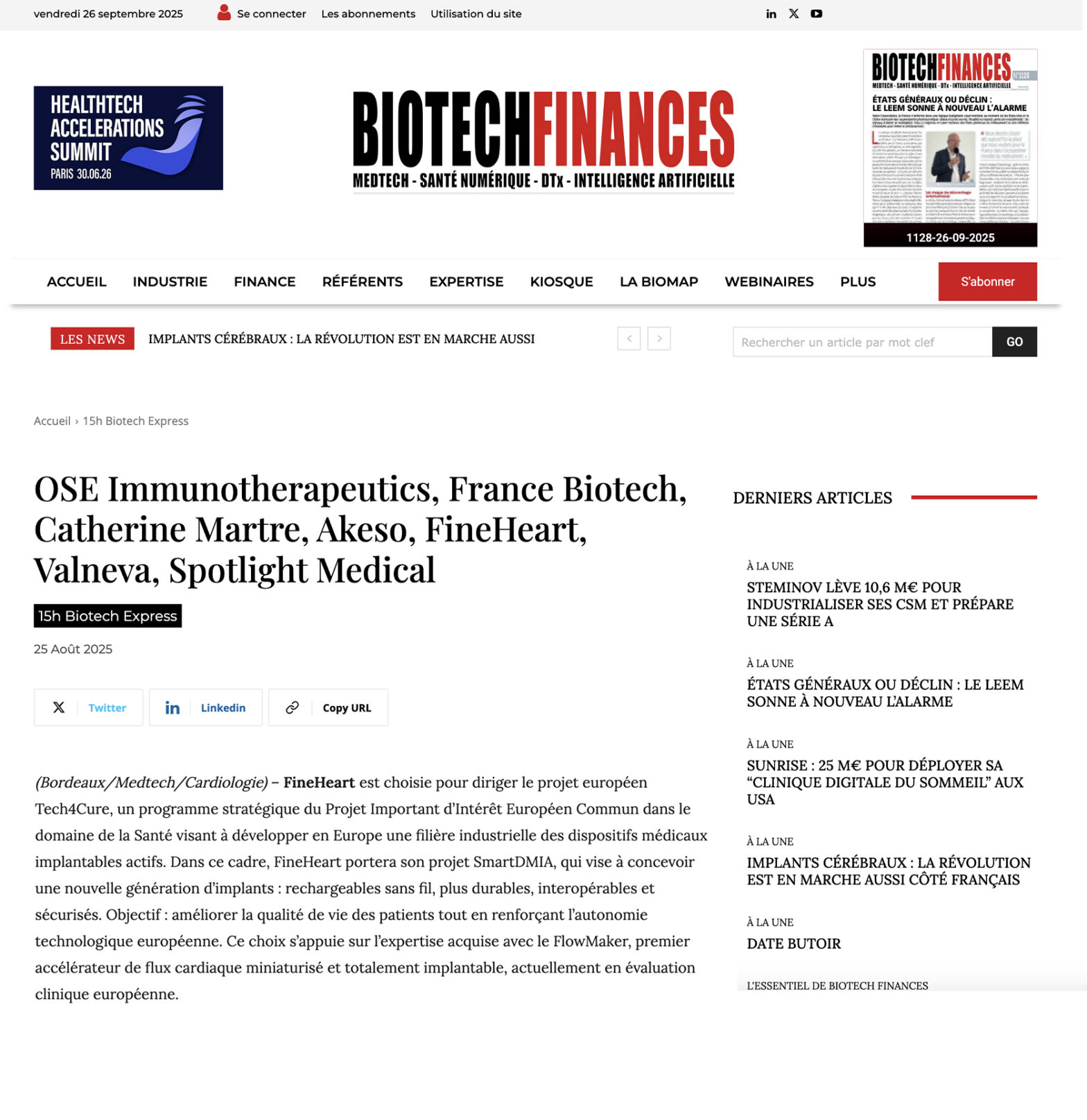 FineHeart désigné Chef de file du PIIEC Santé Tech4Cure